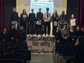 Seit Jahren engagiert sich die Sekundarschule im Rahmen des Holocaust-Gedenktages. Vor allem das Profil von Frau Bonke-Wirtz bereitet sich intensiv auf diesen Tag vor und gestaltet in Absprache mit Darstellen-und-Gestalten-Kursen sowie weiteren Lehrern und Schülern ein besonderes Programm, das gegen das Vergessen und für Toleranz, Vielfalt und Miteinander steht.