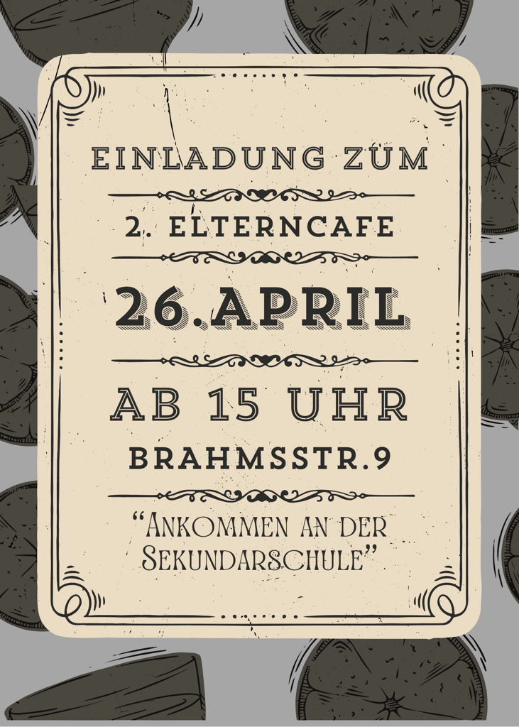 Nach dem erfolgreichen Auftakt bieten wir am Freitag, 26. April, das nächste Elterncafé am Standort Brahmsstraße an. Beginn ist 15 Uhr. Das Café richtet sich an alle Eltern, die unter dem Motto „Ankommen in der Sekundarschule“ Austausch wünschen. Im Nebenraum werden Spiele für eventuell mitkommende Kinder aufgebaut.