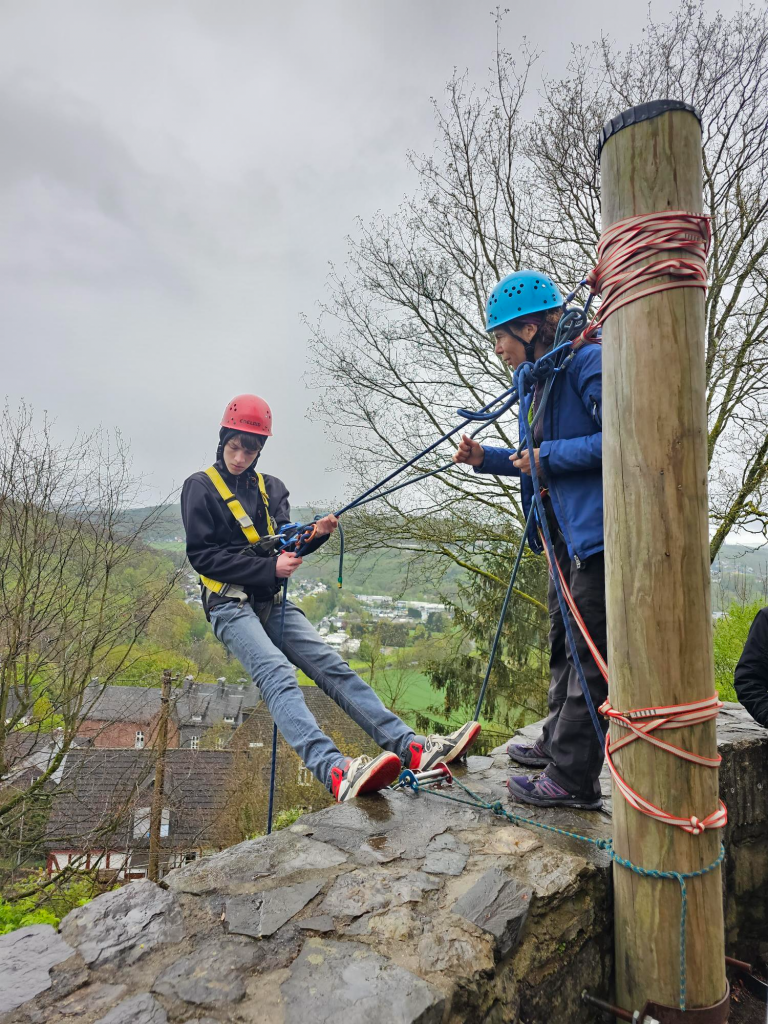 Eine andere Gruppe weilte auf der Freusburg, wo es unterstützt von Erlebnispädagogen eine ganz besondere Woche in Sachen Zusammenhalt, Grenzen kennenlernen und überwinden gab. Bogenschießen, Kooperationsspiele, Spieleabende, Abseil- und Hochziehübungen formten Schritt für Schritt eine Sekundarschul-Einheit.
